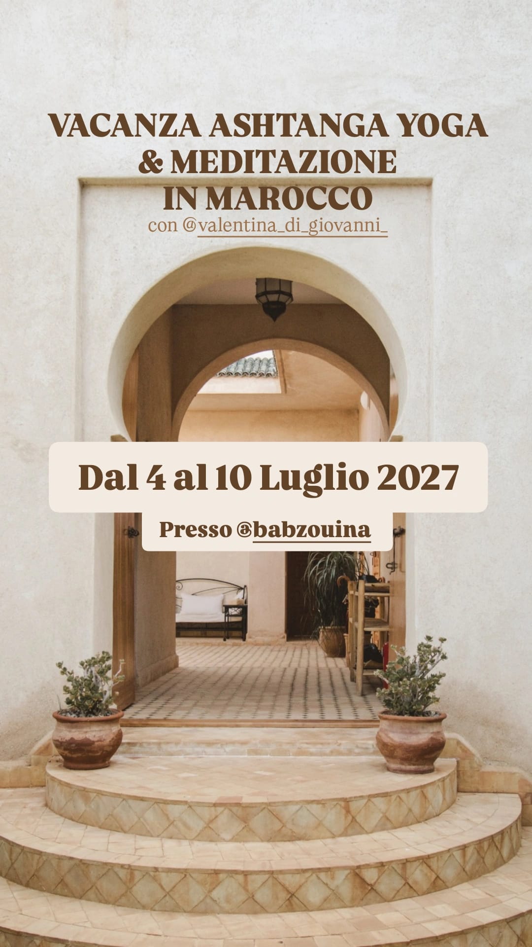 Certain retreats may include additional excursions or activities. Find more information in the retreat brochures below. Depending on the retreat, you can book directly with the teacher or with Bab Zouina.